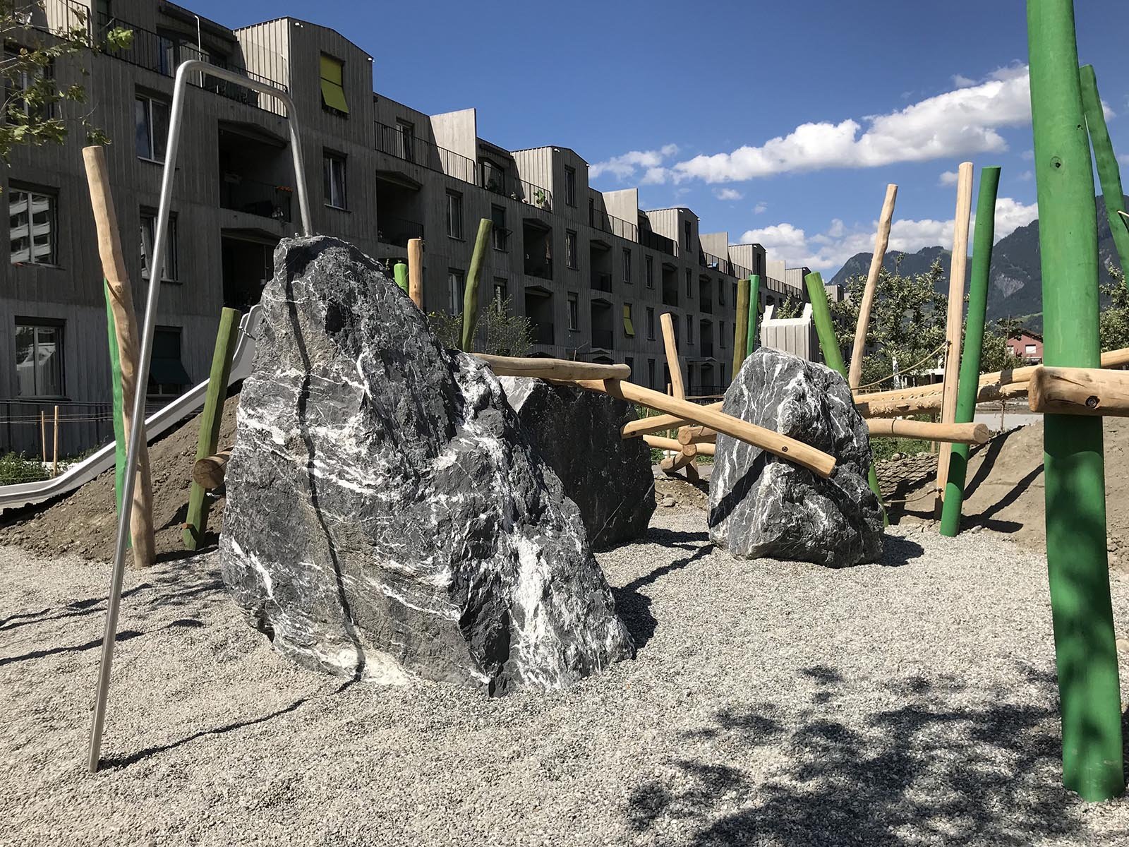 über einen wettbewerbsgewinn kamen wir zum bau des spielplatzes in der wohnsiedlung an der austrasse in chur. die vorgaben für den wettbewerb waren: hügelige landschaft und naturnahe gestaltung.