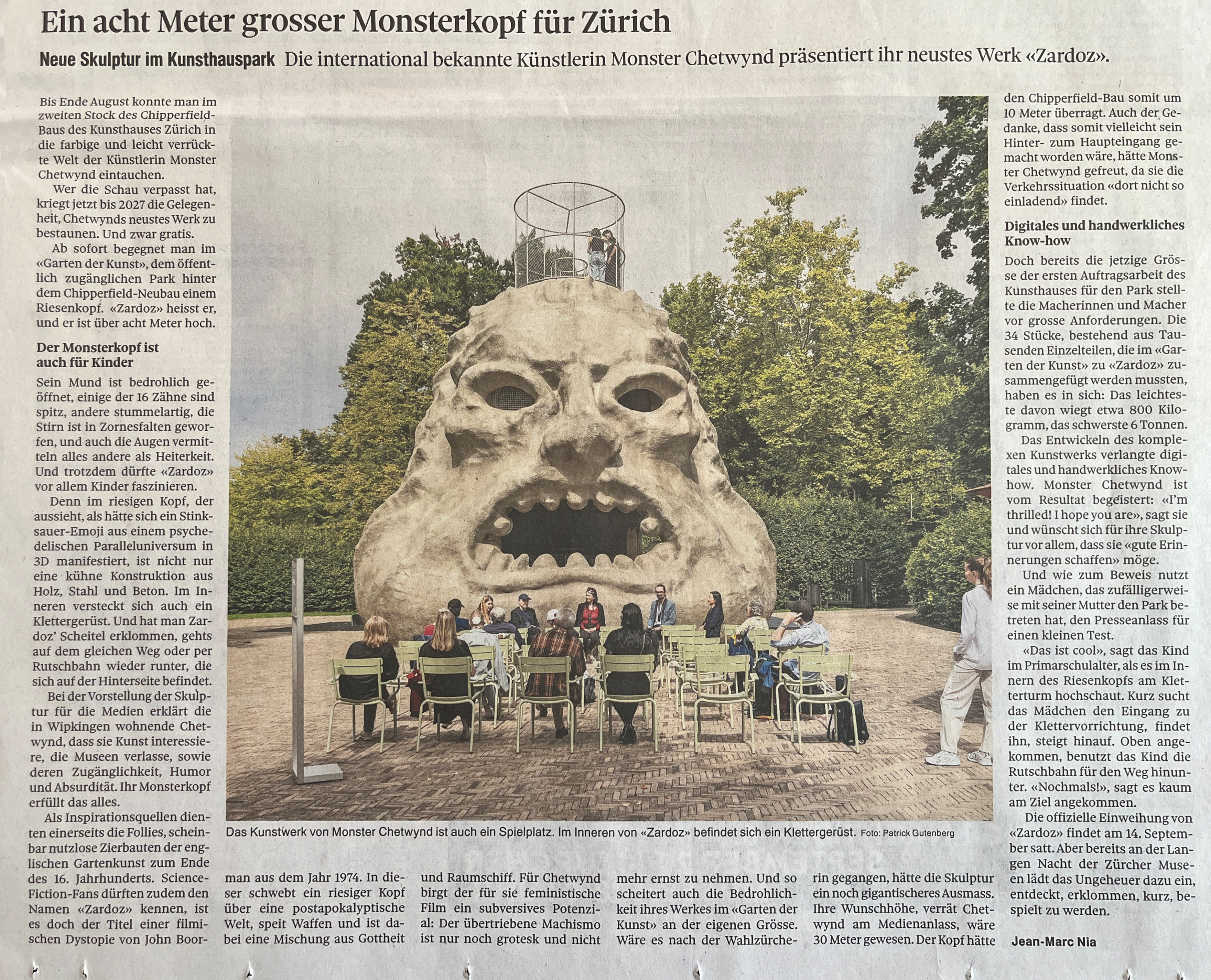 für das kunsthaus zürich hatte die künstlerin monster chetwynd die möglichkeit, eine grossformatige skulptur im park hinter dem neuen gebäude zu realisieren.